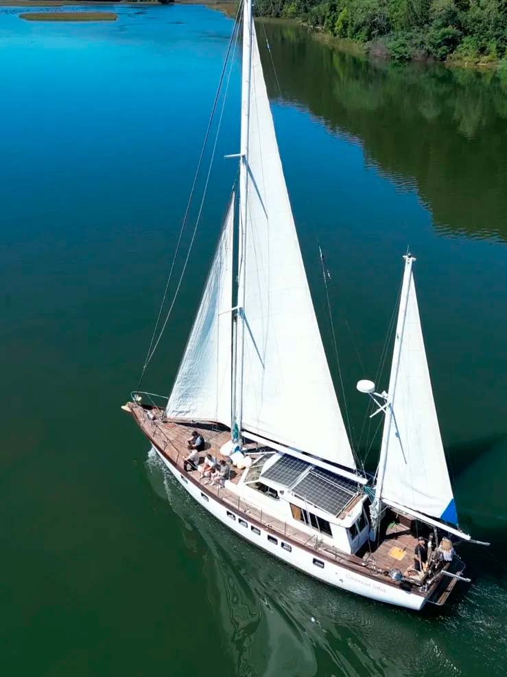 Vive una experiencia única y relajante de 4 horas navegando a vela por el majestuoso río Valdivia. Una travesía íntima y participativa donde conocerás la historia local, aprenderás jerga marinera y podrás izar velas y mover cabos como parte de la tripulación.